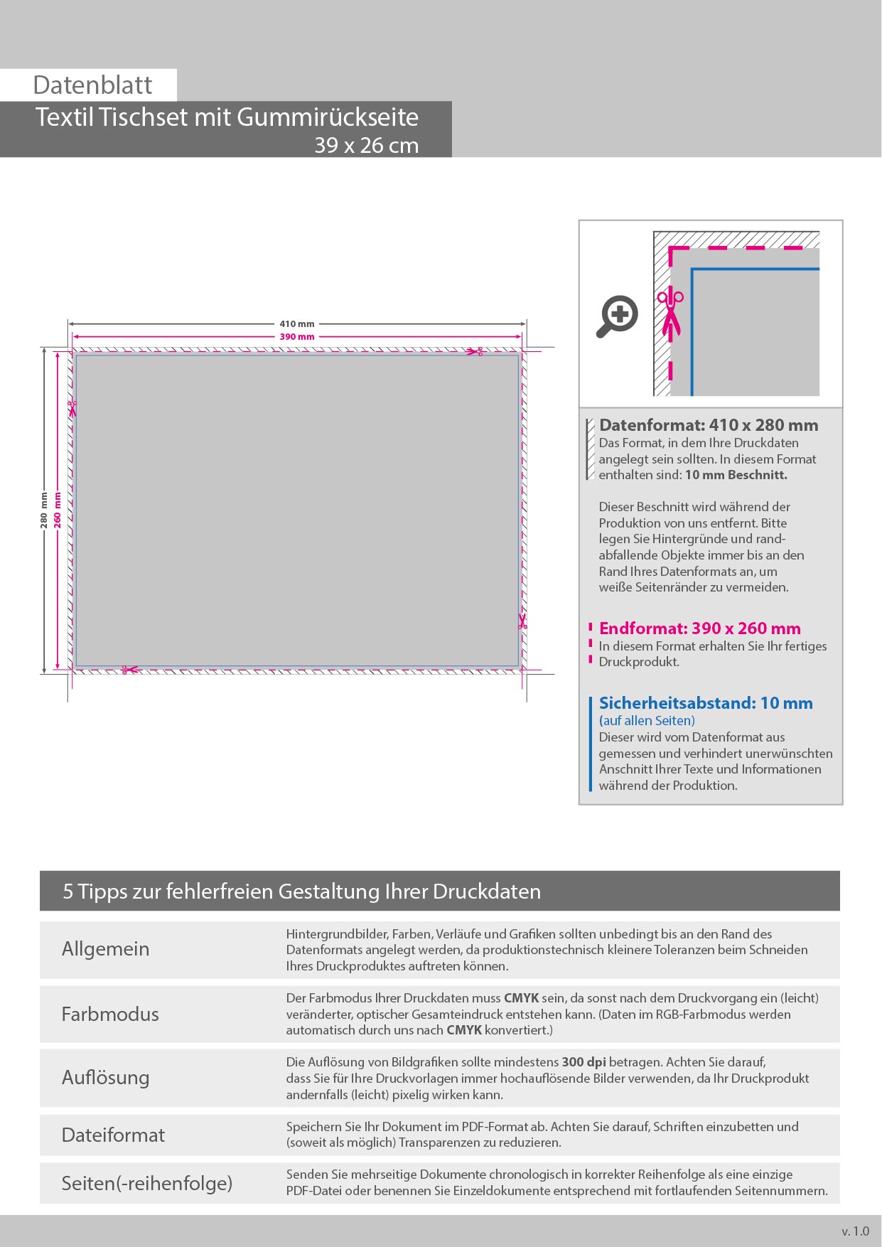 Rutschfestes Textil-Tischset mit Gummirückseite, einseitig bedruckt in brillanter Fotoqualität