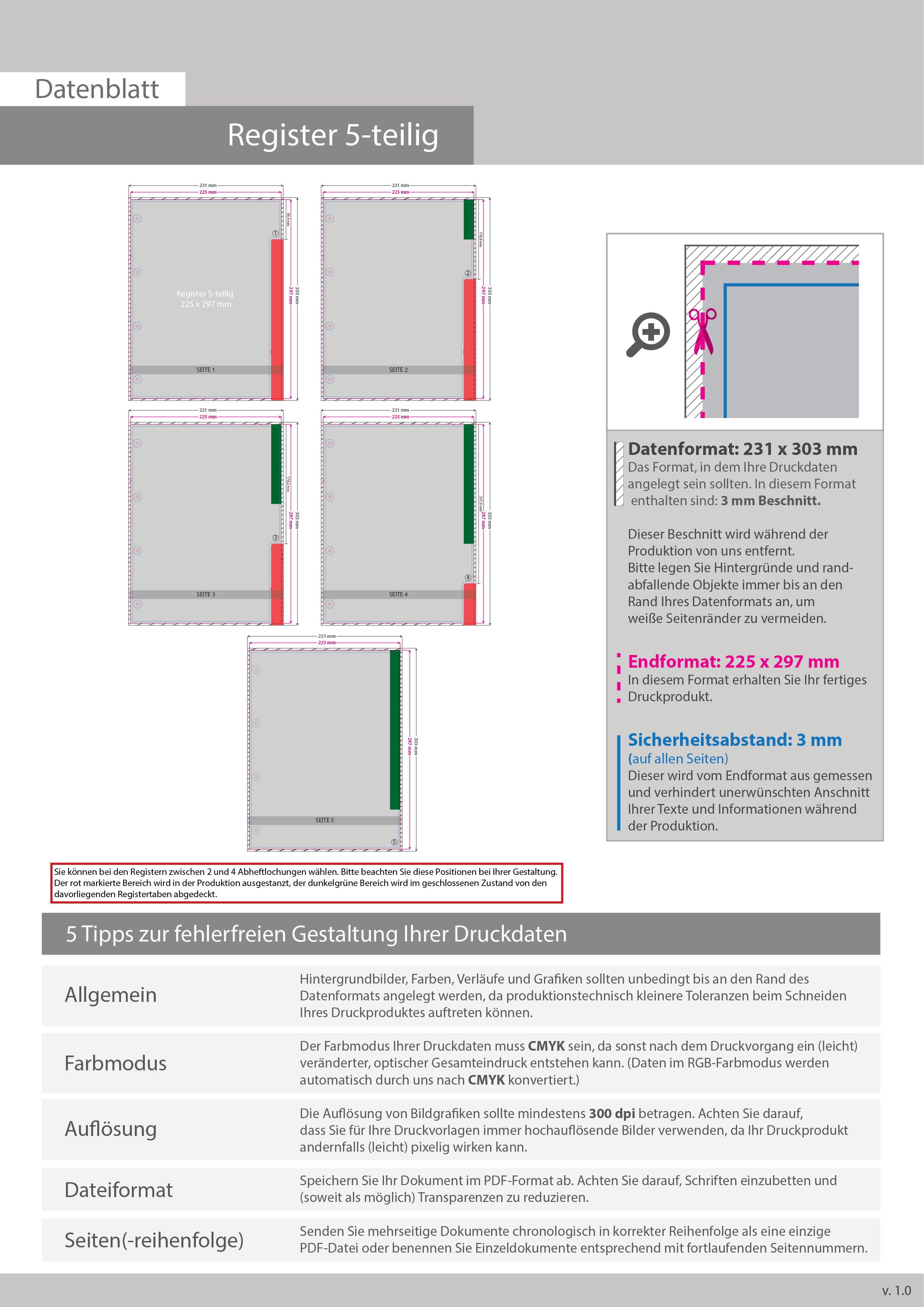 Registerblätter für DIN A4, 5-teilig, einseitig bedruckt (4/0)