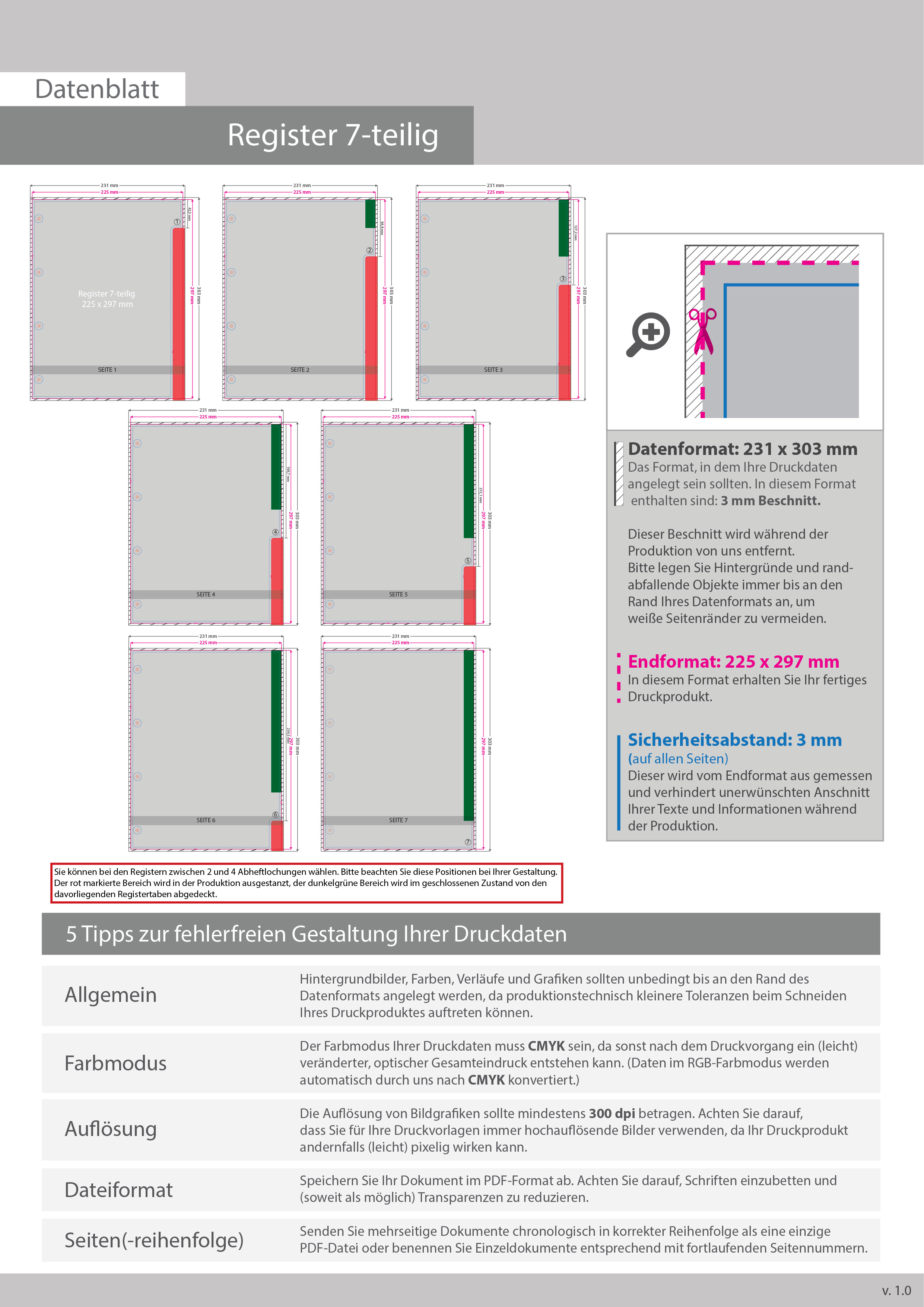 Registerblätter für DIN A4, 7-teilig, einseitig bedruckt (4/0)