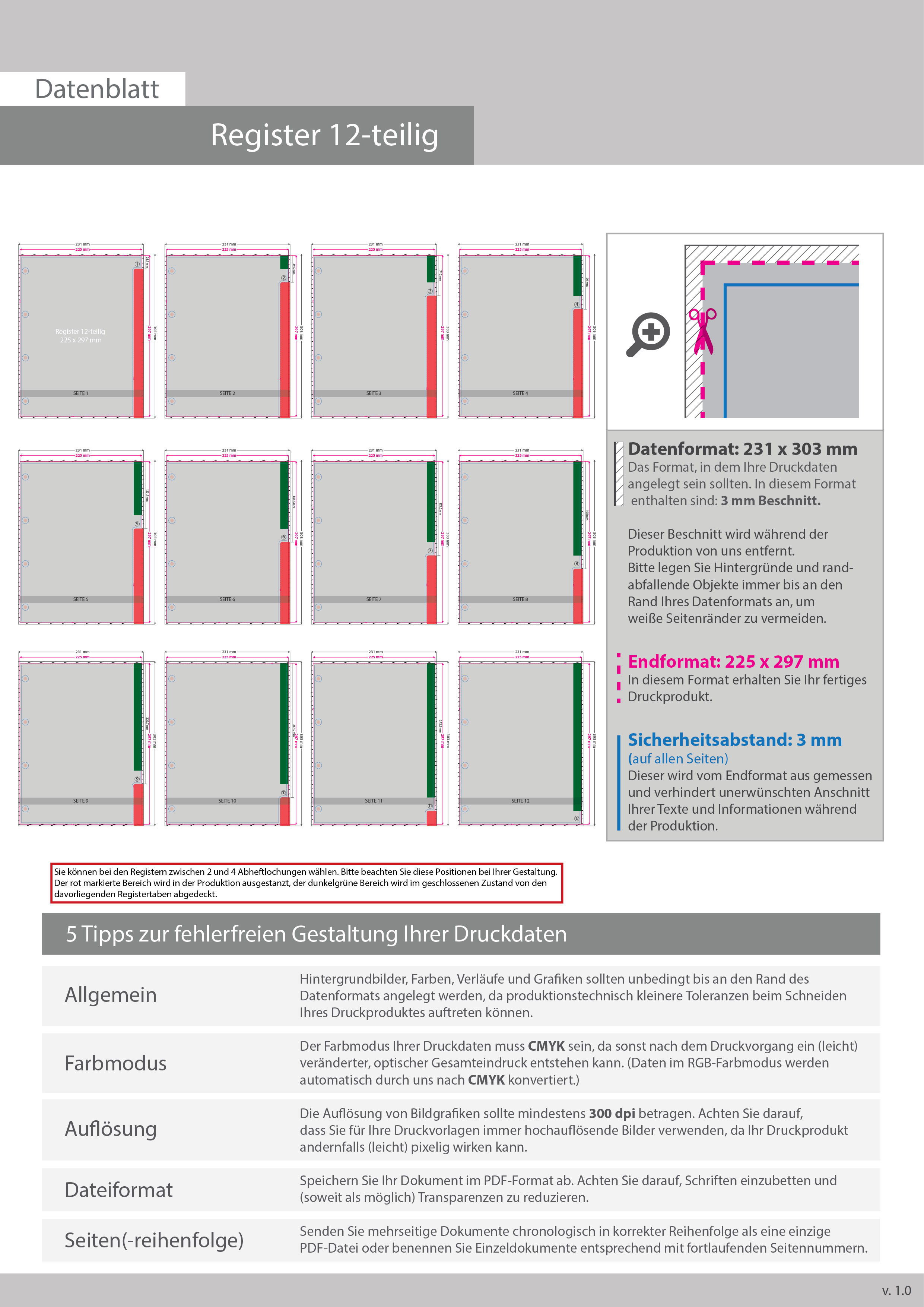 Registerblätter für DIN A4, 12-teilig, einseitig bedruckt (4/0)