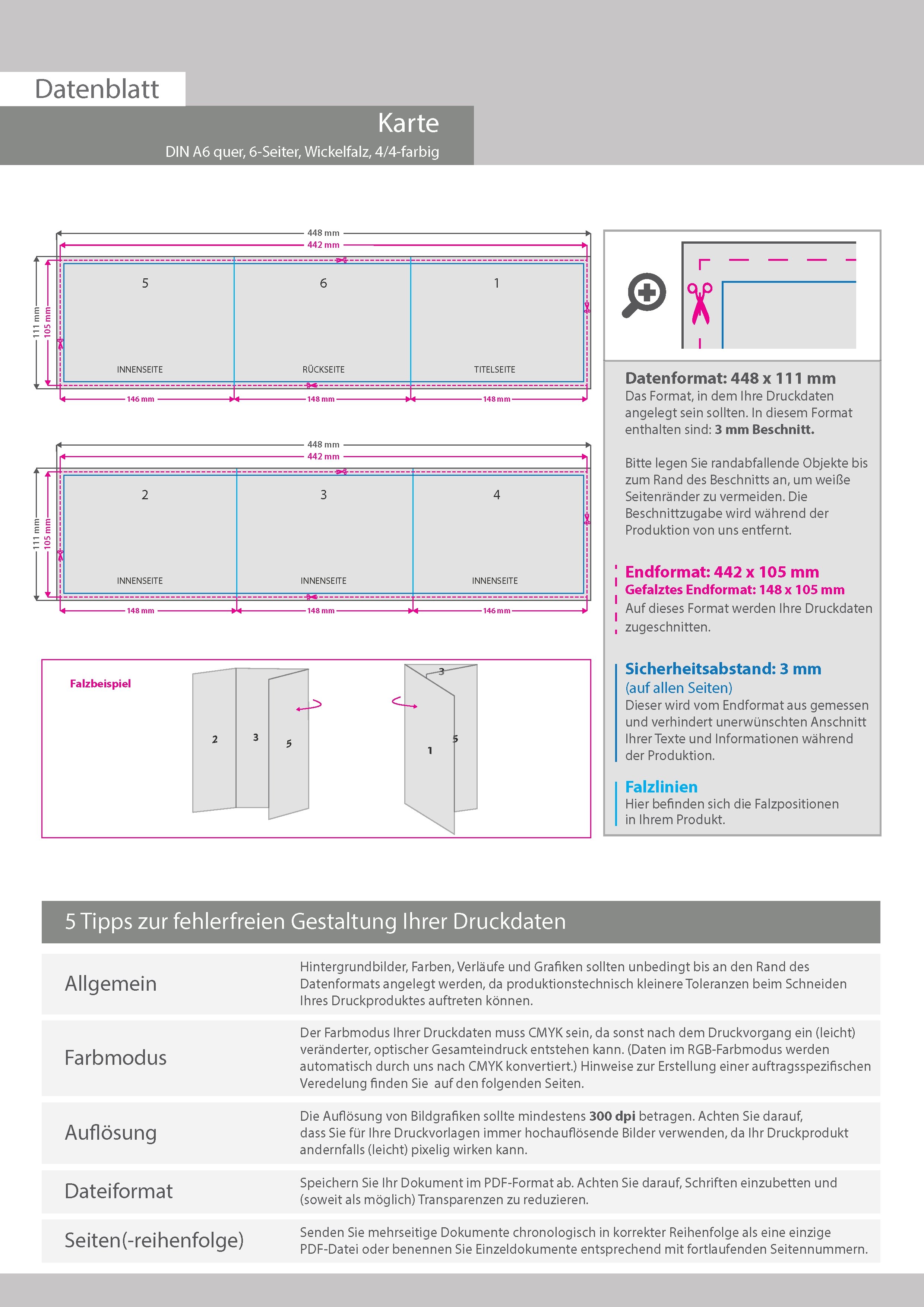 Geburtstagskarte, gefalzt auf DIN A6 quer, vertikaler Wickelfalz, 6-seitig